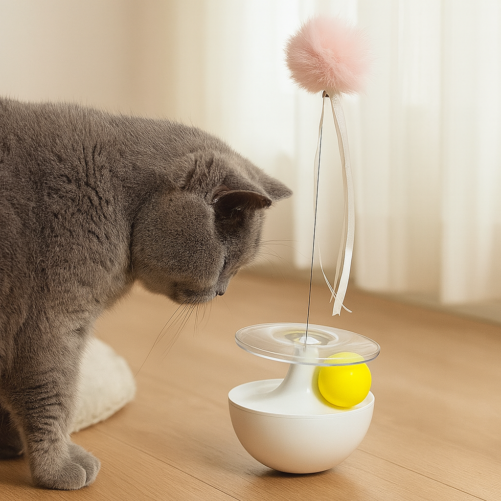 Give your cat the perfect mix of movement and mental stimulation. This wobble-base toy rotates with every touch, keeping your cat entertained and active throughout the day.
